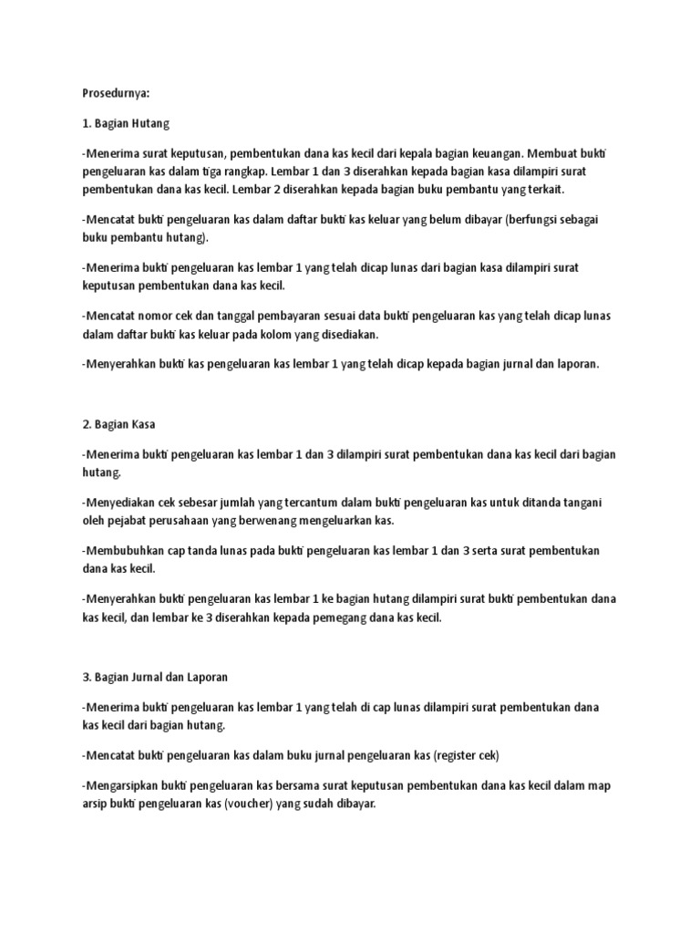Bab Iii Pembahasan 1 Pembentukan Dana Kas Kecil Dilakukan Dengan Cek Dan Dicatat Dengan Mendebit Pdf Document