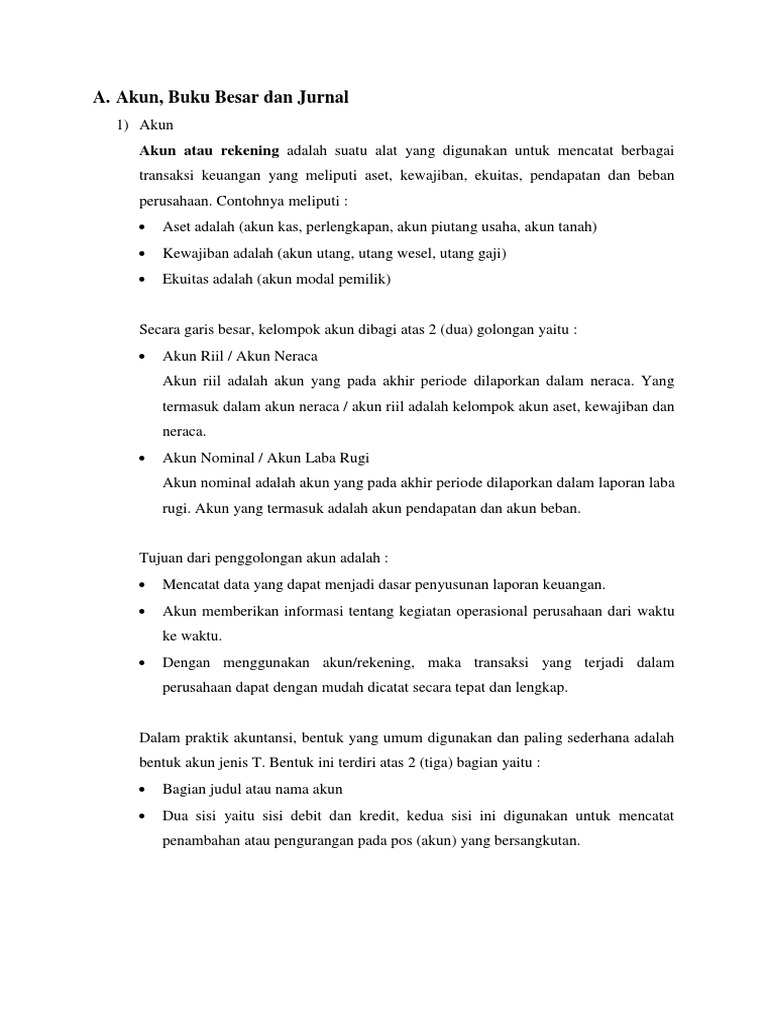 Akun nominal, contohnya pendapatan jasa dan beban-beban dalam perusahaan jasa atau penjualan, pembelian, beban-beban dalam perusahaan dagang dan prive tidak dimasukkan ke dalam Neraca Saldo sehabis penutupan sebab sebelumnya saldo akun nominal tersebut telah dinihilkan (ditutup) dengan sumbangan jurnal epilog yang …