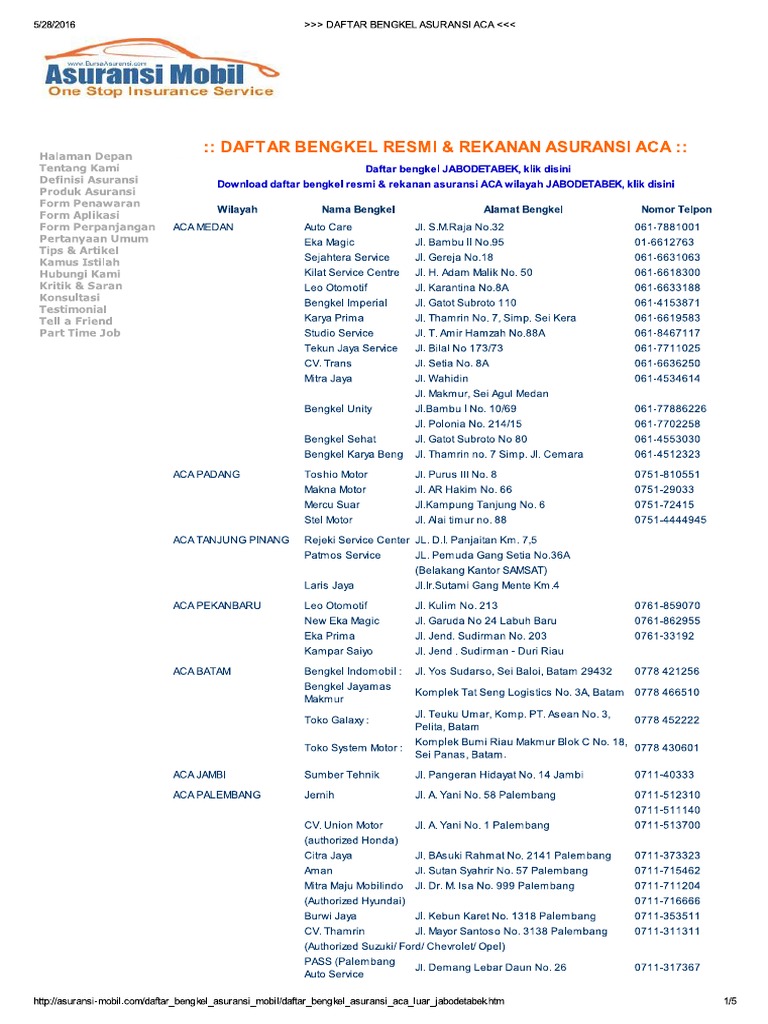 Bengkel rekanan asuransi aca.
