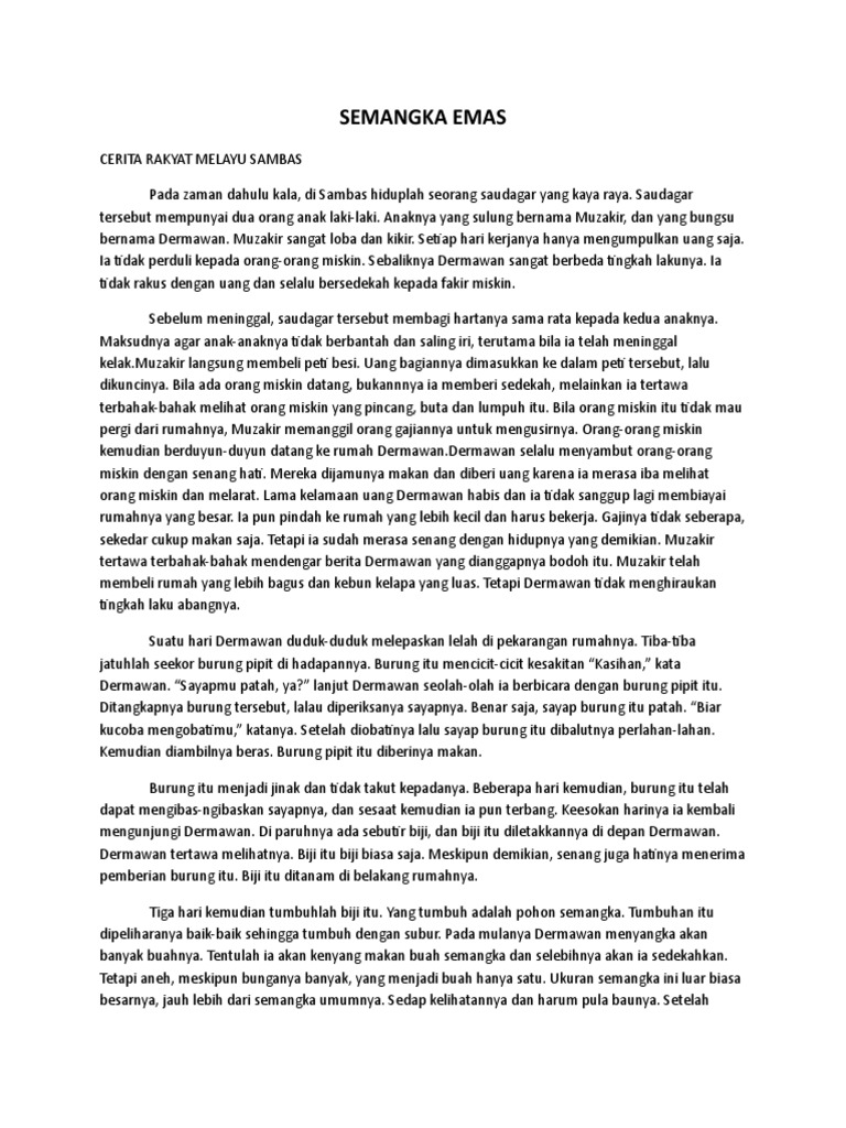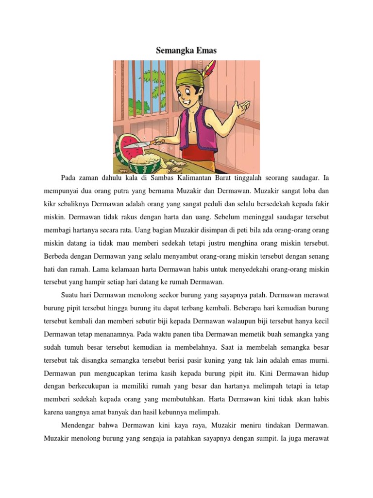 Apr 24, 2015 — ... has many tales that usually called as "cerita rakyat" or folklore. ... and one of them was “Semangka Emas” or “The Golden Watermelon”.