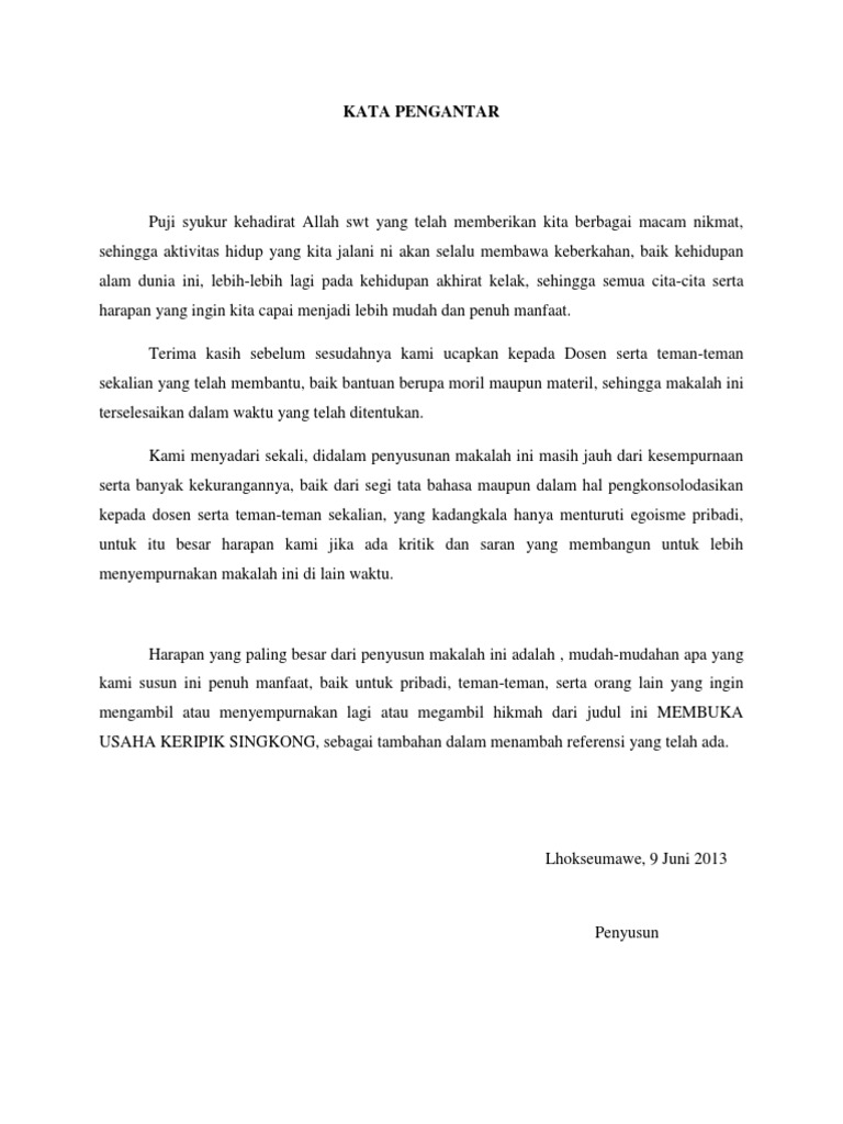 Nov 20, 2015 · TUGAS : BISNIS DAN UKM PROPOSAL USAHA KERIPIKI KULIT SINGKONG (KINGKONG CHRISPY) OLEH SANWINDAYANI 136601147 SEKOLAH TINGGI ILMU EKONOMI (STIE -66) KENDARI 2014 KATA PENGANTAR Puji syukur penulis ucapkan kehadirat Allah SWT yang telah memberikan rahmat dan hidayahnya sehingga penulis dapat menyelesaikan makalah ini dengan baik dan tepat waktu.…