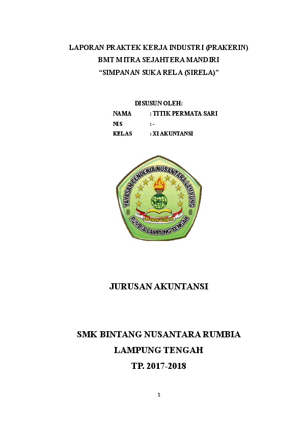 contoh laporan prakerin smk jurusan perbankan syariah, contoh laporan pkl jurusan ... Kelas : X1 Jurusan : Akuntansi Laporan Prakerin Ini Telah Dinyatakan ...
