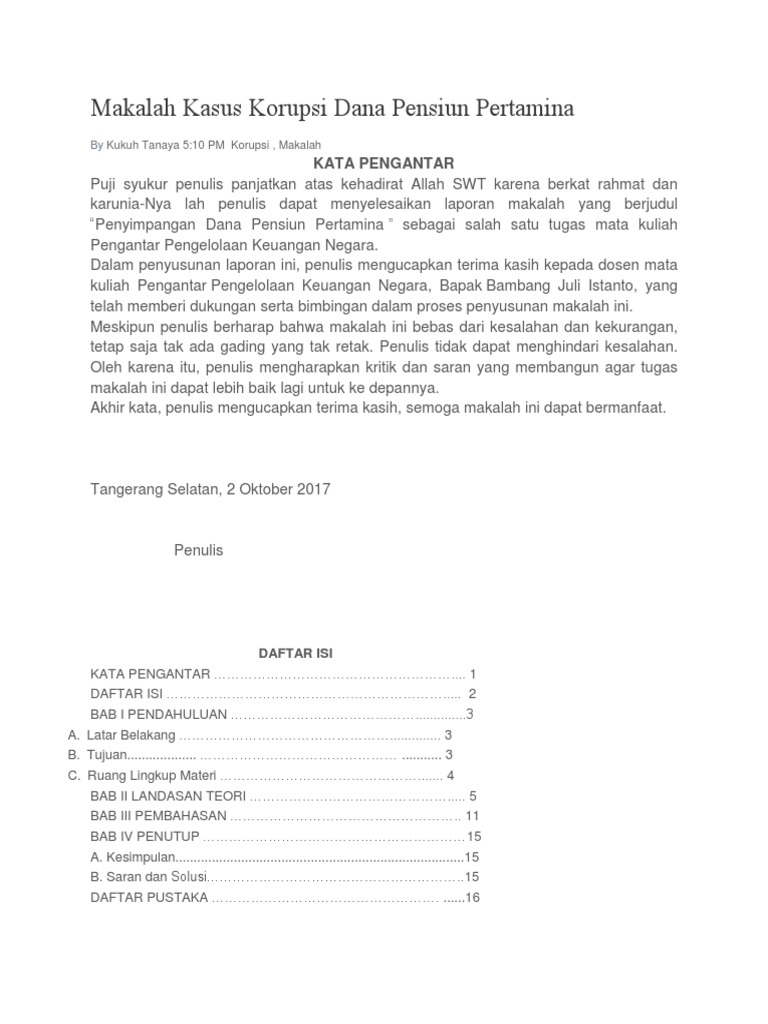 Untuk kasus dana pensiun pertamina bpk menyimpulkan ada penyimpangan untuk kegiatan investasi saham khusus pada pembelian saham pt sugih energy tbk. Contoh perhitungan pesangon. Uang dana pensiun ini digunakan untuk membeli pt sugih energy tbk sebesar 599 milyar rupiah dan pengadaan kapal pt pertamina trans kontinental diperkirakan 35 milyar ...