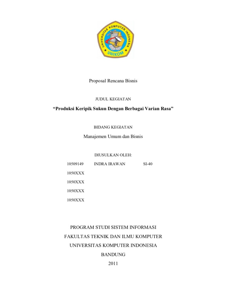 Oct 12, 2021 · Bisnis plan adalah rencana tertulis pada bisnis yang sudah didiskusikan sebelumnya tentang bagaimana kegiatan bisnis dilakukan untuk mencapai tujuan bersama. Bisnis plan setiap bisnis tentunya berbeda-beda satu dengan lainnya. Lantas, kira-kira seperti apa contoh proposal bisnis plan yang mampu menarik minat sekaligus meyakinkan calon penanam ... CONTOH PROPOSAL RENCANA BISNIS KERIPIK PEDAS 123 PENDAHULUAN. A. LATAR BELAKANG MASALAH. Makanan ringan, cemilan, atau kudapan adalah istilah bagi makanan yang bukan merupakan menu utama. Makanan yang dianggap makanan ringan merupakan makanan untuk menghilangkan rasa lapar sementara waktu, memberi sedikit tenaga, atau sesuatu yang dimakan untuk ... Contoh proposal usaha makanan ringan adalah salah satu proposal yang banyak dicari. Proposal ini kurang lebih sama dengan proposal usaha di bidang lainnya.. Ada beberapa poin penting yang harus diperhatikan, yaitu tujuan pendirian usaha, gambaran umum usaha yang akan dibentuk, perencanaan usaha secara detail, serta strategi pemasarannya. Contoh Proposal Usaha Makanan - Indonesi memiliki banyak sekali jenis-jenis masakan yang enak-enak. Dari masakan Padang, Sunda, Jawa, dan lainnya. Banyak sekali makanan tradisional khas Indonesia yang bisa dijadikan usaha. Hal ini merupakan sebuah peluang bagi orang yang jeli. Apalagi kebutuhan konsumi di Indonesia ini sangat tinggi sekali.