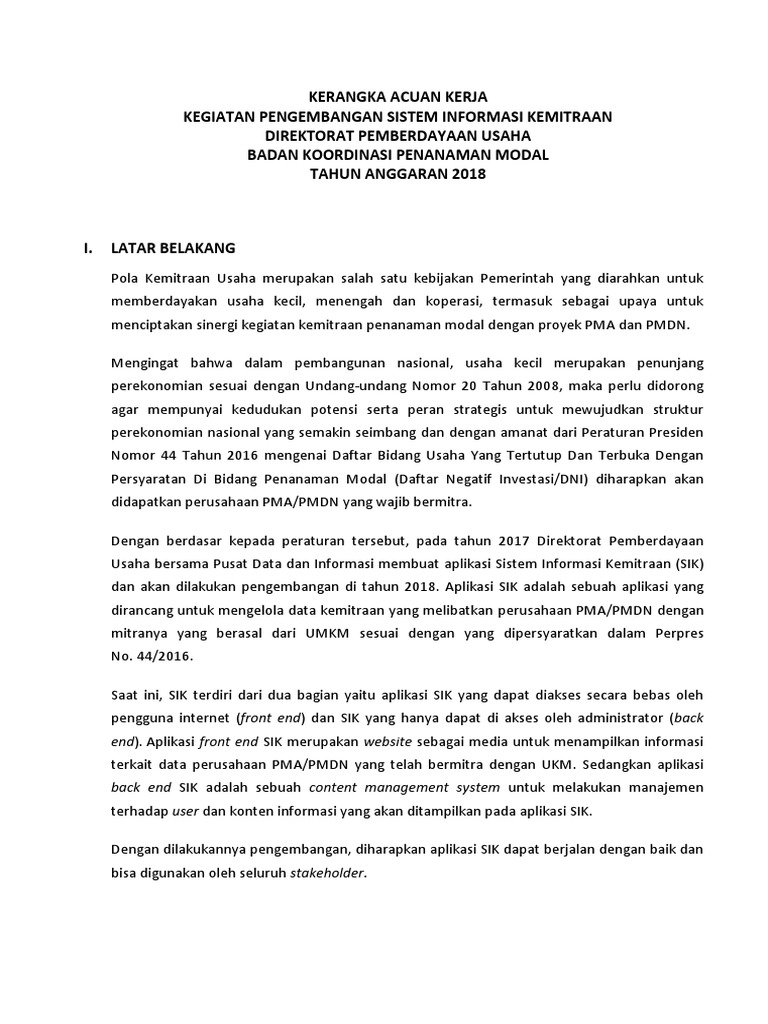 Daftar negatif investasi pdf. Mengingat PRESIDEN REPUBLIK INDONESIA - 2 - 1. Pasal 4 ayat (1) Undang-Undang Dasar Negara Republik Indonesia Tahun 1945; 2. Undang-Undang Nomor 25 Tahun 2007 tentang Penanaman Modal (Lembaran Negara Republik Indonesia Daftar Negatif Investasi di Indonesia. Dalam melakukan investasi di Indonesia, investor harus mematuhi beberapa aturan khusus yang dibuat oleh pemerintah, terutama mengenai jenis bisnis apa yang akan dibangun. Meskipun pemerintah menyambut sebanyak mungkin investor ke Indonesia, ada beberapa bisnis tertentu yang tidak diperbolehkan. ... DAFTAR NEGATIF INVESTASI PASCA DIUNDANGKANNYA PERPRES NOMOR 39 TAHUN 2014 BADAN KOORDINASI PENANAMAN MODAL Jakarta, 17 Juni 2014 . The Investment Coordinating Board of the Republic of Indonesia 2 MEKANISME PENYUSUNAN DNI 2014 . Indonesia Investment Coordinating Board I. Pendahuluan . Pengertian Daftar Negatif Investasi Daftar Negatif Investasi (DNI) adalah daftar yang dikeluarkan pemerintah mengenai usaha mana saja oleh perusahaan asing dan domestik yang dapat berinvestasi di Indonesia. Dalam hal ini juga daftar yang dimiliki cukup panjang, usaha yang ada dapat usaha terbuka atau usaha yang tertutup.