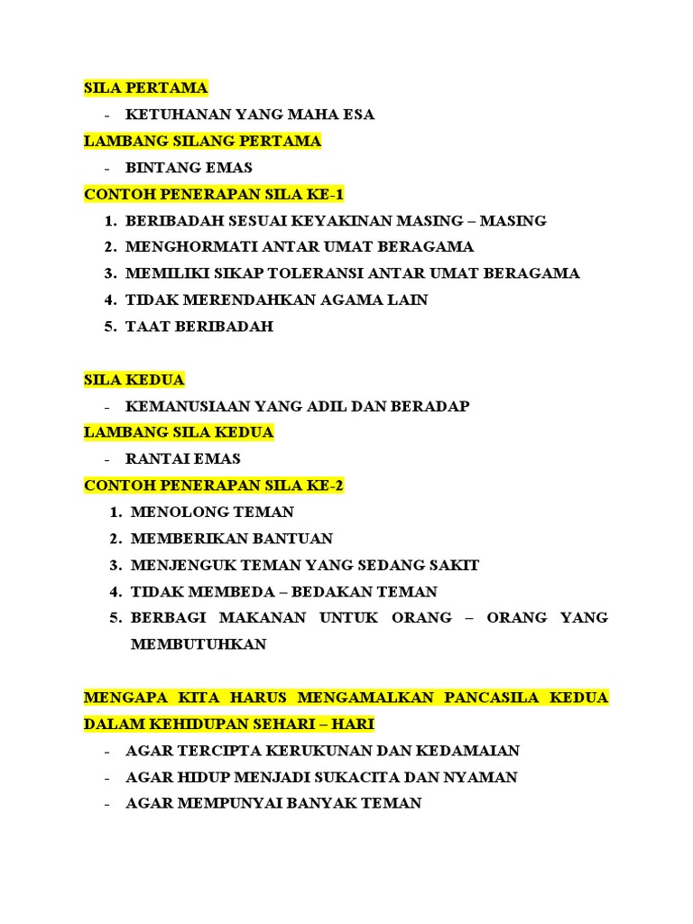Arti Lambang Pancasila Sila ke 1 Sila pertama dalam pancasila adalah Ketuhanan Yang Maha Esa, berlambang bintang emas dengan lima sudut serta berlatar belakang hitam. Bintang emas bisa diartikan bahwa Tuhan yang Maha Esa sebagai cahaya bagi kehidupan manusia.