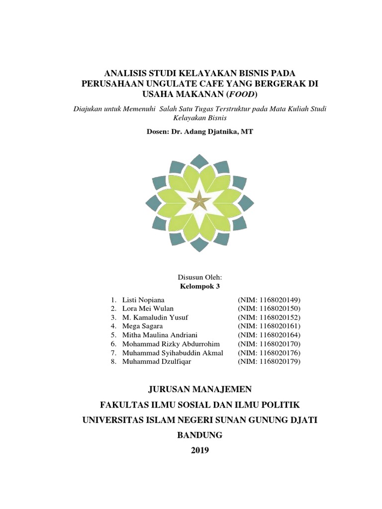 Mar 10, 2019 · Studi Kelayakan Bisnis (Kedai Kopi Bang Ben) 1. PROPOSAL STUDI KELAYAKAN BISNIS “KEDAI KOPI BANG BEN” Proposal ini dibuat untuk memenuhi tugas kelompok pada mata kuliah Studi Kelayakan Bisnis Didi Sujadi, S.E., M.M. Oleh : Kelompok II Almas Izzaty Syahida 2016121203 Febby Agustini Armeliya 2016120146 Moch.