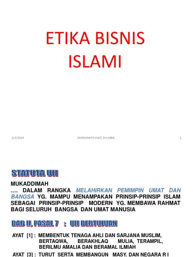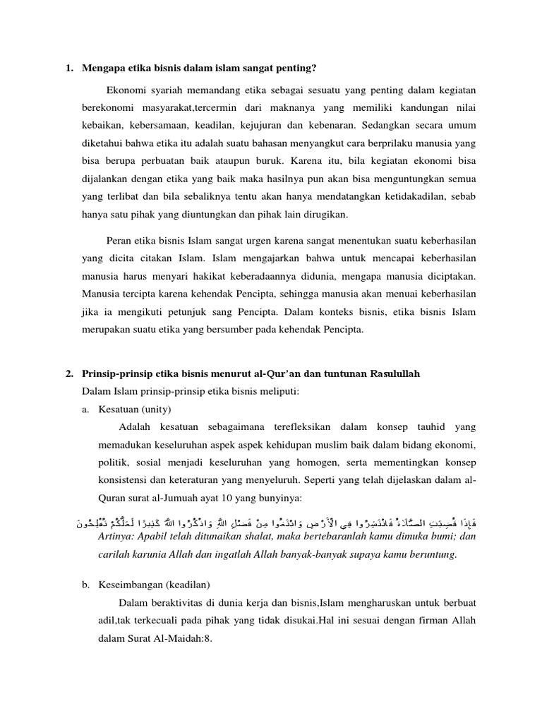 (PDF) Bisnis Dalam Perspektif Islam (Telaah Konsep, Prinsip ... Islamic business must be based on Islamic ethics derived from the Qur'an and the Sunnah of the Prophet Muhammad. Generally, business ethics is a normative discipline, whereby particular ethical...
