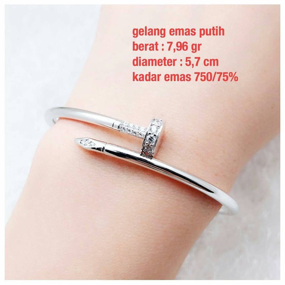 √ Gelang Emas Putih (Nilai Karat, Model, & Cara Merawat) Gelang emas putih adalah perhiasan yang banyak diminati sebagai alternatif untuk gelang emas kuning yang harganya lebih mahal. Pilihlah model gelang emas putih terbaik berdasarkan nilai karatnya dan rawatlah dengan cara yang tepat.