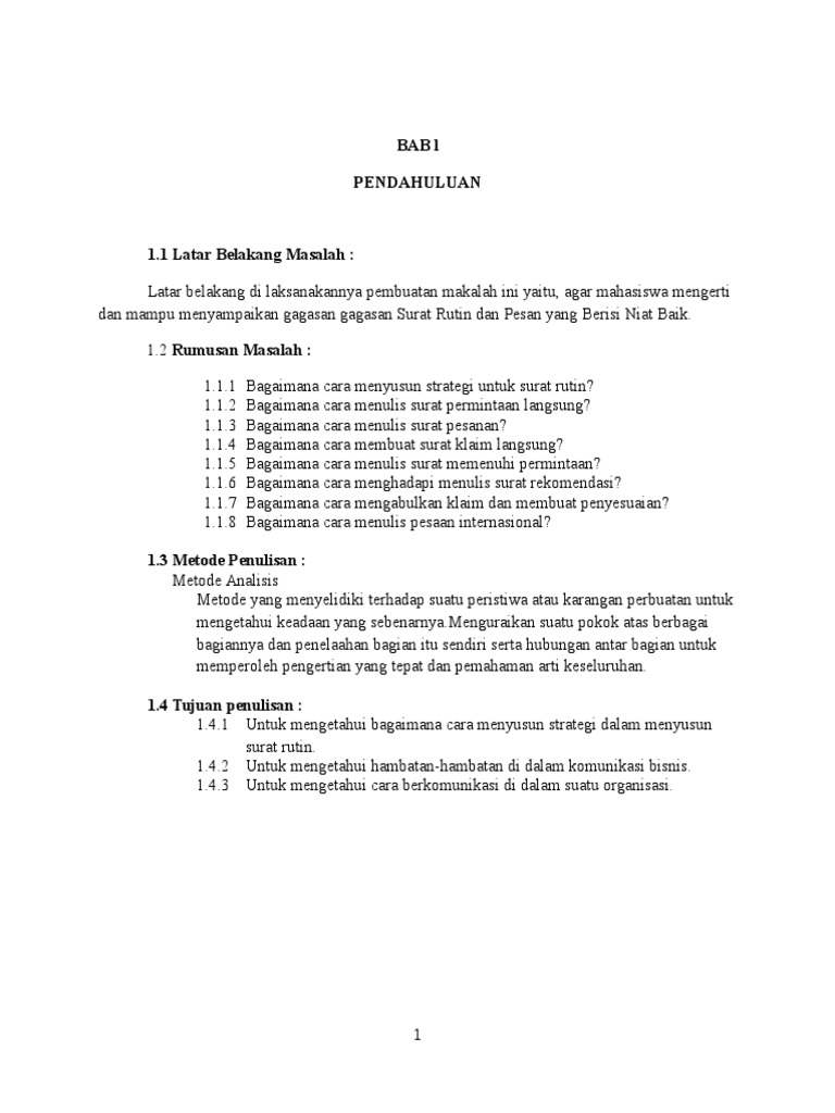 Contoh Makalah Komunikasi Bisnis | Proses Penulisan... Penyusunan pesan-pesan bisnis meliputi tiga tahap yaitu Pesan-pesan rutin, good news, atau goodwill lebih cocok dengan menggunakan pendekatan langsung. Kesalahan mekanik dalam penulisan pesan-pesan bisnis dapat mengganggu pemahaman maksud dan tujuan penulisan...