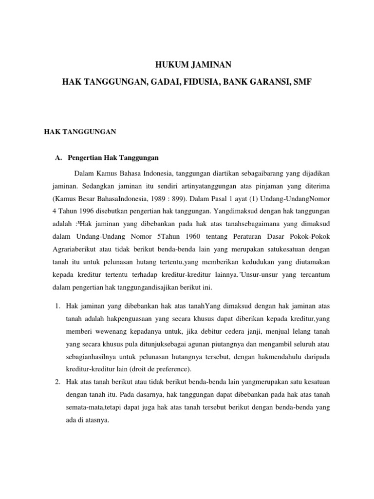 Malay [eljq88y09v41] aku yang tidak kau ini itu dan di anda akan apa dia saya kita untuk mereka ada tahu dengan bisa dari tak kamu kami adalah ke ya orang tapi harus pergi baik dalam sini ... HUKUM BISNIS - UNY Perbedaan gadai dengan hipotik: 1. gadai harus disertai dengan penyerahan kekuasaan atas barang yang digadaikan sedangkan hipotik tidak. 2. gadai hapus jika barang yang digadaikan berpindah ke tangan orang lain, sedang hipotik tidak, tetapi tetap mengikuti bendanya 3. Pengertian Gadai dan Hipotik (Hak tanggungan) | Butew.com Disamping Gadai dan Hipotik,ada juga dikenal istilah Fiduciaire Eigendom Overdracht (FEO) ,yang biasanya disingkat Fidusia, dan Crediet Verband. Fidusia adalah Penyerahan hak milik atas barang-barang yang dipertanggungkan ,dengan perjanjian bahwa penyerahan hak milik itu hanya untuk jaminan atas pembayaran kembali uang pinjaman.