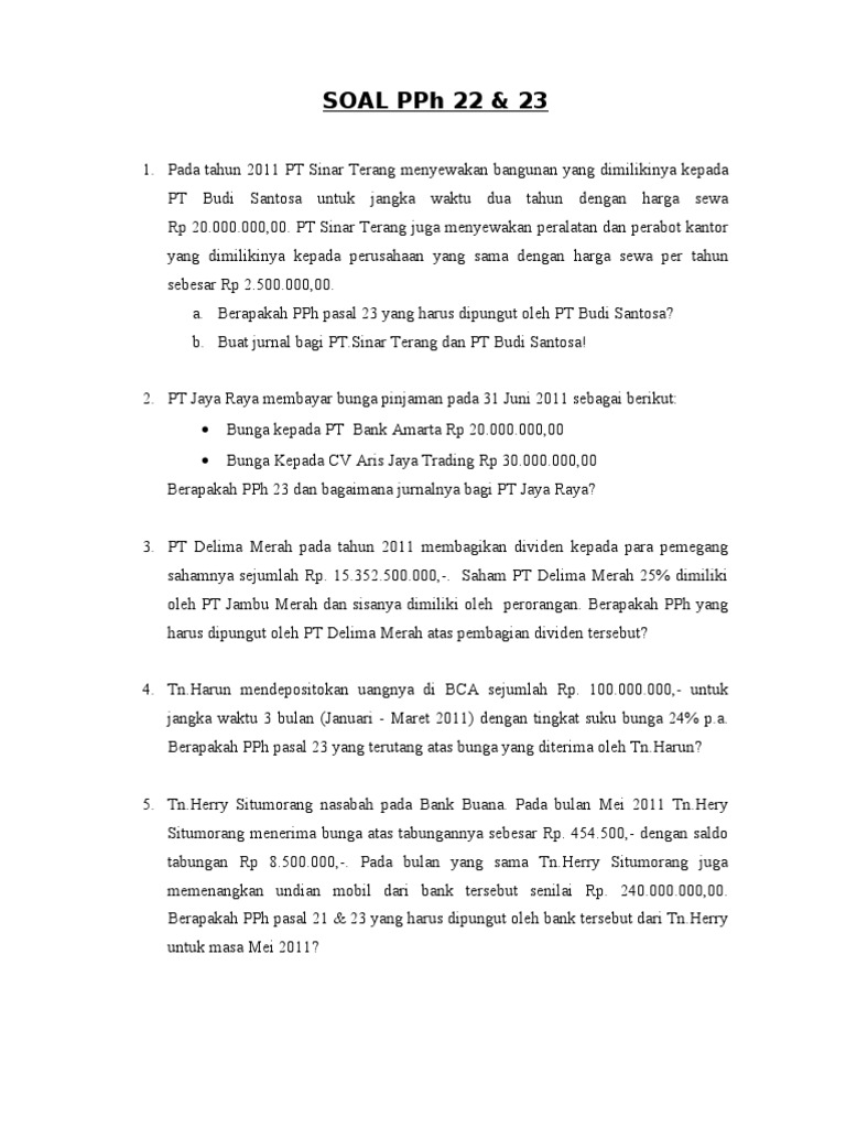 › blog › pajak-atas-bunga-pinjamanPajak Atas Bunga Pinjaman, Inilah Ketentuan Dan Contoh ... Mar 11, 2021 · Pajak atas bunga pinjaman yang diterima oleh wajib pajak dalam negeri dengan ketentuan PPh pasal 23 akan dipotong dengan tarif 15% dari jumlah brutonya.. Namun pembayaran pajak atas bunga pinjaman bank tidak dikenakan PPh pasal 23, karena termasuk penghasilan yang akan dibayarkan atapun terutang kepada bank atas pengecualian PPh pasal 23. PPh atas Dividen dan Bunga A. Yaitu bunga pinjaman dari Wajib Pajak Badan ke Wajib Pajak Badan dan/atau dari Wajib Pajak Orang Atas penghasilan bunga tersebut tidak dikenakan PPh Pasal 23 tetapi dikenakan PPh Pasal 4 1. Pada tanggal 10 oktober 2011, membayar bungan pinjaman kepada Bank Mandiri Yogyakarta... Cara Mengisi Bukti Potong PPh Pasal 23 atas Bunga Pinjaman... Contoh soal pph pasal 23 atas bunga pinjaman menjadi salah satu penghasilan yang harus dikenakan pajak. Cara mengisi bukti potong pph pasal... Penerapan P3B atas penghasilan bunga, dividen... bunga tsb berasal dpt dipersamakan dng penghasilan yg diperoleh dari uang yg dipinjamkan, termasuk bunga atas penjualan secar kredit. WP Badan wajib melakukan pemotongan Lee Corporation Pinjaman Singapura Indonesia Ketentuan Pajak di Indonesia: PPh Pasal 26: 20%, Tarif PPh Badan...