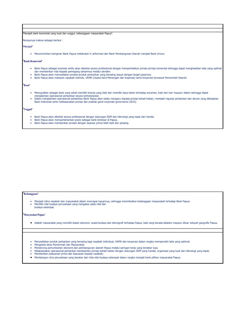 BSI | Bank Syariah Indonesia 19 Feb 2022 - 30 Jun 2022. Hypermart : Diskon hingga Rp 30.000,-. 07 Mar 2022 - 30 Jun 2022. Belanja Kebutuhan Harian Dari Rumah bersama BSI Hasanah Card. 07 Mar 2022 - 30 Jun 2022. Raih Nikmat Beribadah ke Tanah Suci. 10 Mar 2022 - 31 Dec 2022. KFC : Cashback 15% sd Rp 150.000,-. 10 Mar 2022 - 22 Jul 2022. Bank Umum - ojk.go.id Bank Indonesia Regulation Number 2/11/PBI/2000 Law of Republic of Indonesia on stipulation of Government Regulation in Lieu of Law (Perppu) Financial Services Authority Regulation: Securities Exchange Transaction Sattlement Guarantee Mitra Niaga Indonesia - Visi Dan Misi Total: $ 50.00. View Cart Checkout. Beranda Visi Dan Misi. Visi Dan Misi. Struktur Organisasi. Visi. Menjadi perusahaan berkelas internasional dalam hal manufaktur produk dan penerapan teknologi agroindustri. Misi. - Menghadirkan produk-produk agroindustri yang memiliki nilai tambah sebagai solusi gaya hidup sehat di masyarakat. Perbankan Pada Undang-undang Nomor 10 Tahun 1998 tentang Perbankan, Bank disebutkan sebagai badan usaha yang menghimpun dana dari masyarakat dalam bentuk simpanan dan menyalurkannya kepada masyarakat dalam bentuk kredit dan atau bentuk-bentuk lainnya dalam rangka meningkatkan taraf hidup masyarakat.