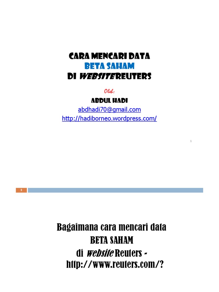 Cara Mencari Data Beta Saham di Website Reuters | Hadi ... Cara Mencari Data Beta Saham di Website Reuters. Pencarian data atau info keuangan untuk keperluan riset atau penulisan tugas akhir melalui website atau webblog tertentu, terkadang bagi sebagian mahasiswa sangat sulit dan membingungkan, karena mereka belum tahu cara memanfaatkannya. Oleh karena itu, melalui tulisan ini diharapkan semua masalah ...